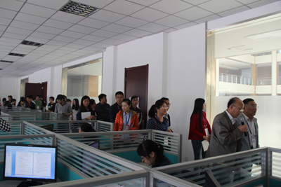 10月16日上午,中國網(wǎng)絡(luò)媒體山東行采訪團一行60多人到我公司進行參觀采訪。 省網(wǎng)信辦喬蘭山主任、網(wǎng)絡(luò)新聞宣傳處國慶東處長、大眾網(wǎng)副總編輯李冉、市宣傳部副部長步衍金等一道參觀,集團公司總經(jīng)理劉琳、副總經(jīng)理鹿慶福陪同參觀,并向記者詳細介紹了康平納智能染整裝備。