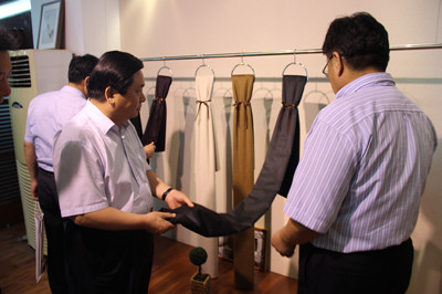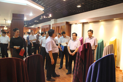 董事長向王信副主任介紹面料產(chǎn)品