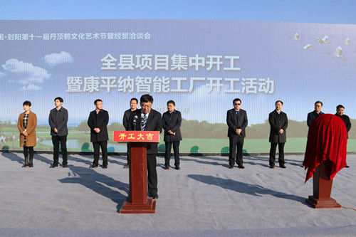 縣委副書記、縣長(zhǎng)唐敬、縣政協(xié)主席邱德兵等縣領(lǐng)導(dǎo);射陽(yáng)縣職能部門主要負(fù)責(zé)人;康平納集團(tuán)董事長(zhǎng)陳隊(duì)范、機(jī)械科學(xué)研究總院博士王紹宗等200余人參加開工儀式。