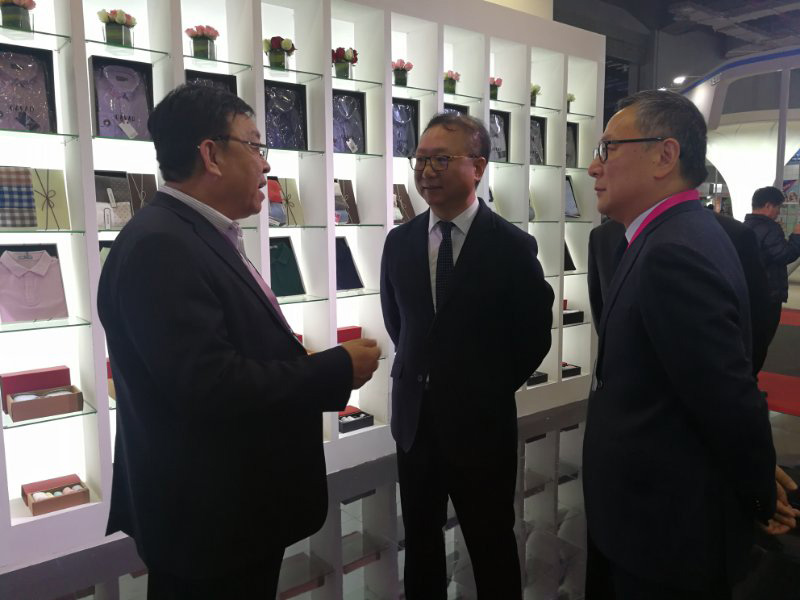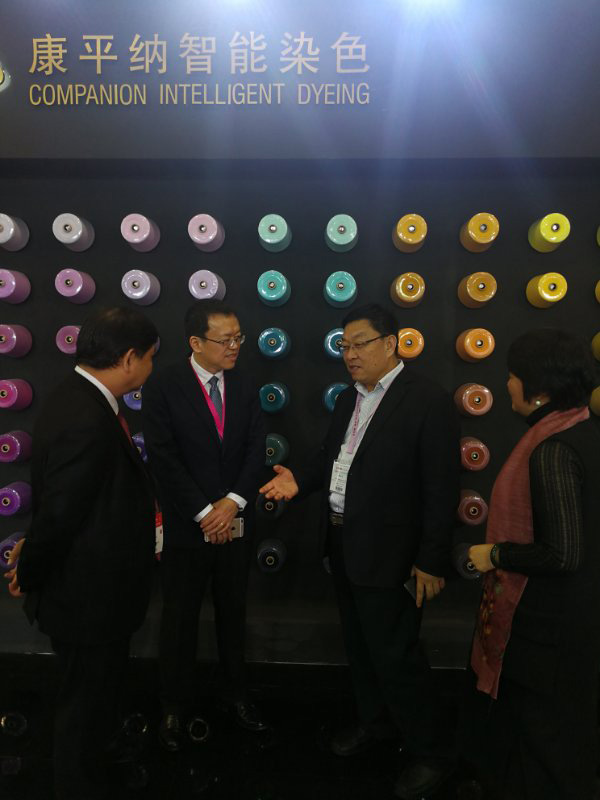 3、中國紡織工業(yè)聯(lián)合會會長孫瑞哲等參觀康平納展位