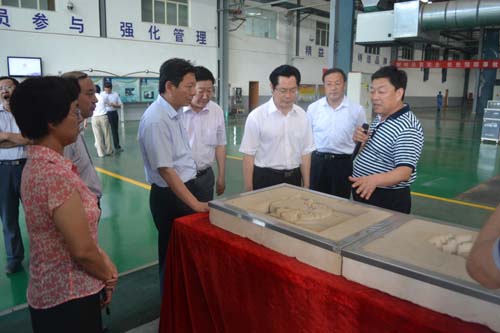 2012年7月10日下午,泰安市副市長辛顯明帶領(lǐng)市經(jīng)濟運行調(diào)研小組到我公司進行考察調(diào)研并進行座談,參觀了自動化染色生產(chǎn)線及生產(chǎn)車間,詳細聽取了工作匯報,對我公司取得的成績予以肯定,并對企業(yè)提出的問題現(xiàn)場辦公予以解決。