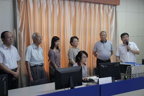 總經(jīng)理劉琳向院士介紹全自動筒子紗染色生產(chǎn)線中控情況