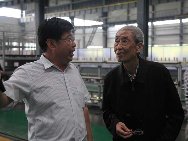 總經(jīng)理劉琳向?qū)O晉良院士(左一)、周翔院士(左三)介紹產(chǎn)品情況