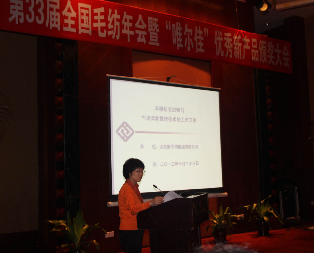 2013年10月24日—26日,第十二屆亞洲紡織會議在上海召開。集團(tuán)總經(jīng)理劉琳被評為2013年中國紡織技術(shù)帶頭人。 在23日提前召開的2013年全國染整可持續(xù)發(fā)展技術(shù)交流會會場及第33屆全國毛紡年會暨“唯爾佳”優(yōu)秀新產(chǎn)品頒獎大會上,集團(tuán)副總經(jīng)理鹿慶福、謝松麗分別發(fā)表主題演講,詳細(xì)介紹了康平納在染整技術(shù)、半精紡面料新工藝技術(shù)開發(fā)與應(yīng)用方面取得成果。期間,由我公司送展的康平納牌高檔羊絨系列面料分別榮獲一、二、三等獎各一項(xiàng),驚艷全場。 在25日東華大學(xué)分會場,由我公司冠名舉辦的“康平納杯”現(xiàn)代紡織裝備技術(shù)研討會上,集團(tuán)總經(jīng)理劉琳發(fā)表主題演講,并與東華大學(xué)簽訂校企合作協(xié)議書。機(jī)械科學(xué)研究總院吳雙峰工程師做《筒子紗染色數(shù)字化技術(shù)研究》學(xué)術(shù)報(bào)告,從專業(yè)技術(shù)角度介紹了康平納機(jī)械有限公司的筒子紗染色數(shù)字化自動成套技術(shù)與裝備。 會議期間,按照董事長指示,充分利用視頻、展板、冠名、主題報(bào)告等多種形式向外界展示康平納公司形象與技術(shù)裝備,達(dá)到預(yù)期宣傳效果。