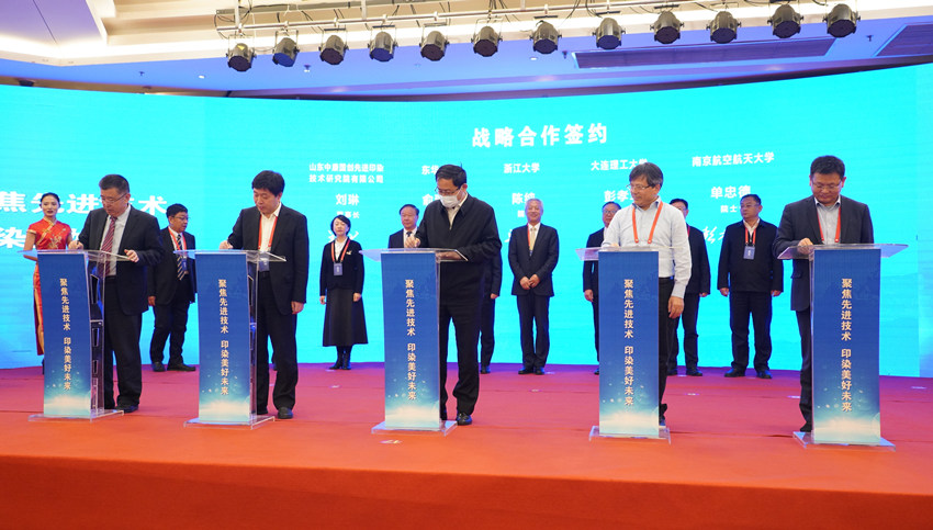 會議舉行了山東中康國創(chuàng)先進印染技術研究院有限公司入駐新址揭牌儀式,與俞建勇、單忠德、陳純、彭孝軍4個院士團隊進行戰(zhàn)略合作簽約,為首席科學家俞建勇院士頒發(fā)聘書,為戰(zhàn)略咨詢專家委員會主任俞建勇、戰(zhàn)略咨詢專家委員會副主任單忠德頒發(fā)聘書,為領銜科學家陳純院士、彭孝軍院士、單忠德院士頒發(fā)聘書,為國家先進印染技術創(chuàng)新中心戰(zhàn)略顧問專家孫晉良院士、蔣士成院士、王玉忠院士、夏長亮院士、陳文興院士、夏東偉校長、徐衛(wèi)林校長、張淑芬教授、李陵申副會長、陳志華會長、陳隊范董事長頒發(fā)聘書,為國家先進印染技術創(chuàng)新中心牽頭單位、建設單位授牌。